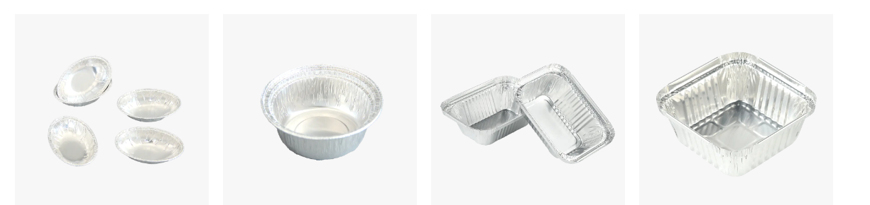 Bộ đồ ăn bằng giấy nhôm (như khay nướng, hộp cơm, đĩa nhôm) được thiết kế tiện lợi và dễ sử dụng.